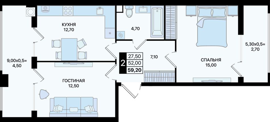Общая площадь59,2 м²