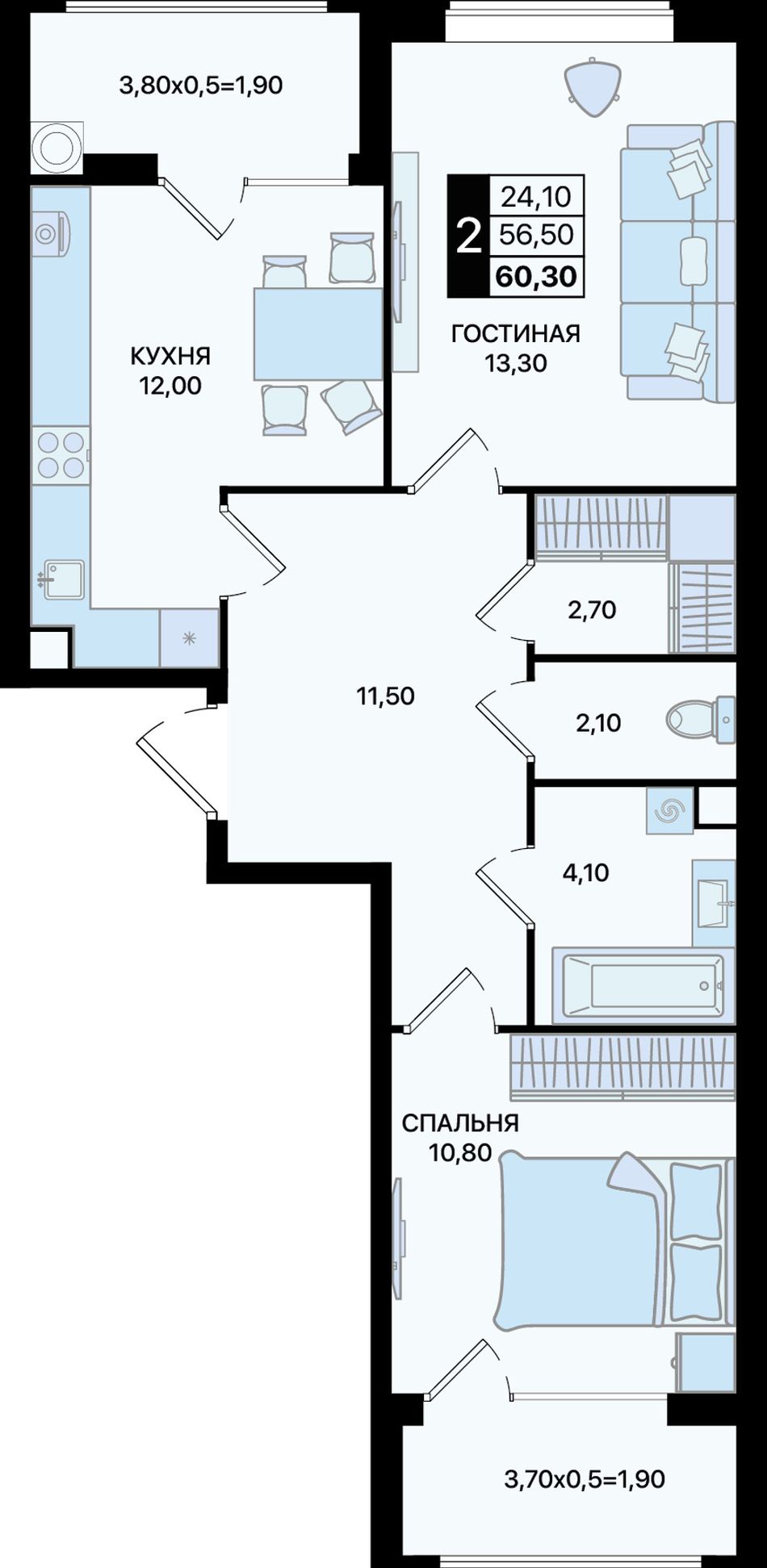 Общая площадь60,3 м²