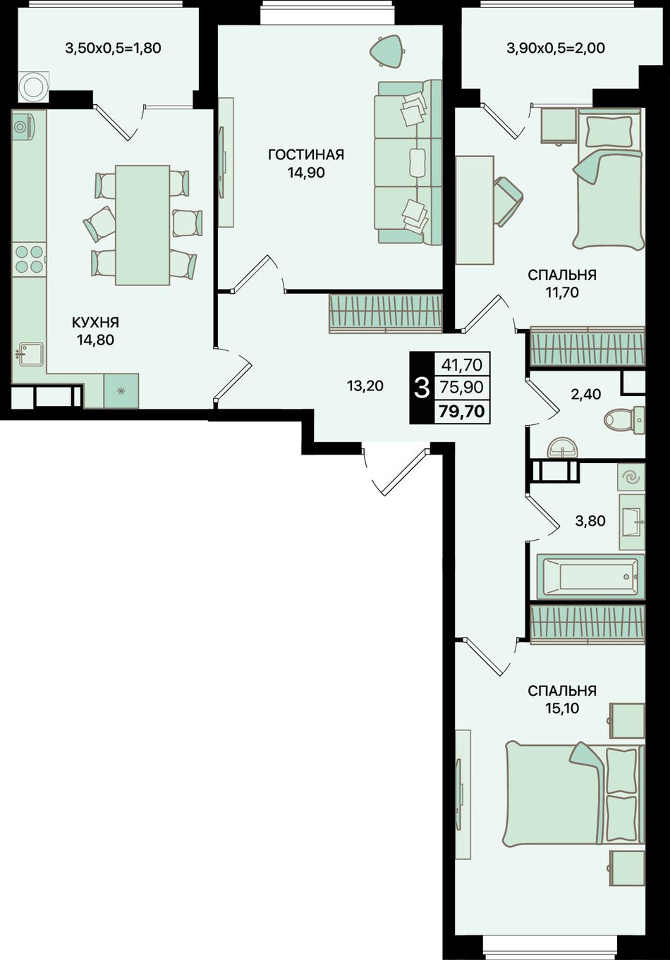 Общая площадь79,7 м²