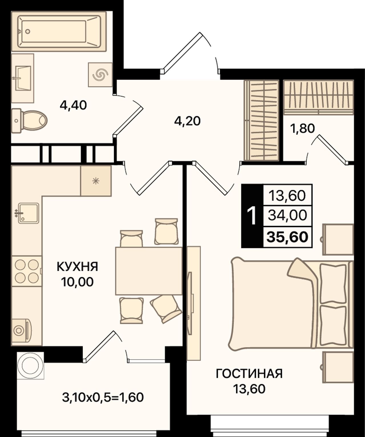 Общая площадь35,6 м²