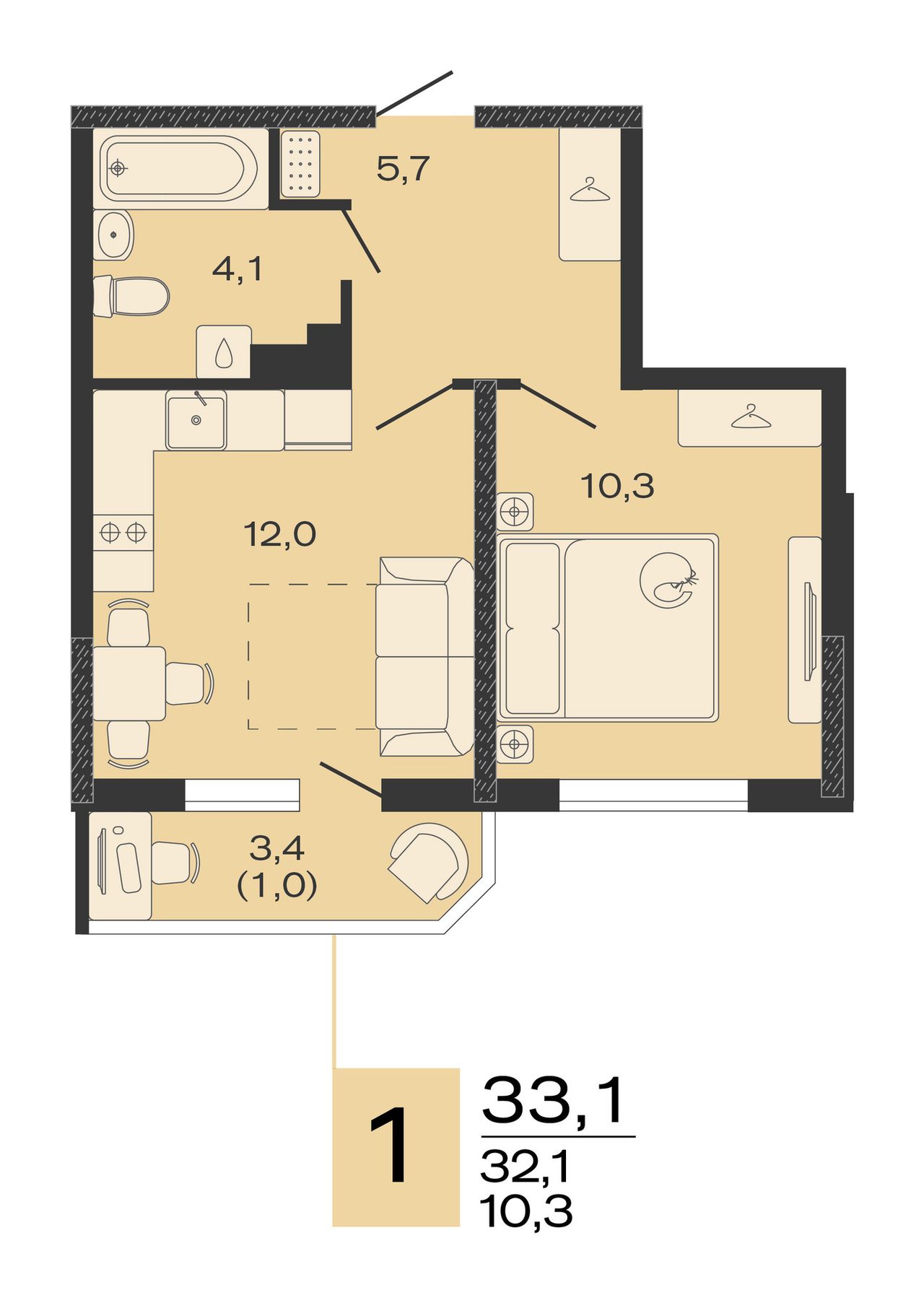 Общая площадь33,1 м²