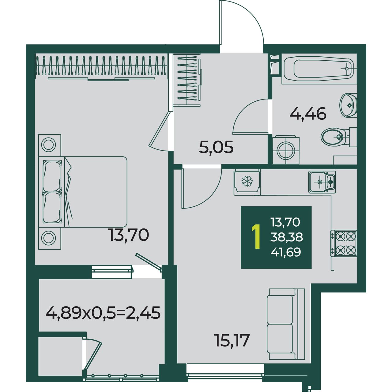 1-комнатная — 41,69 м² 7/18 эт. в Образцово