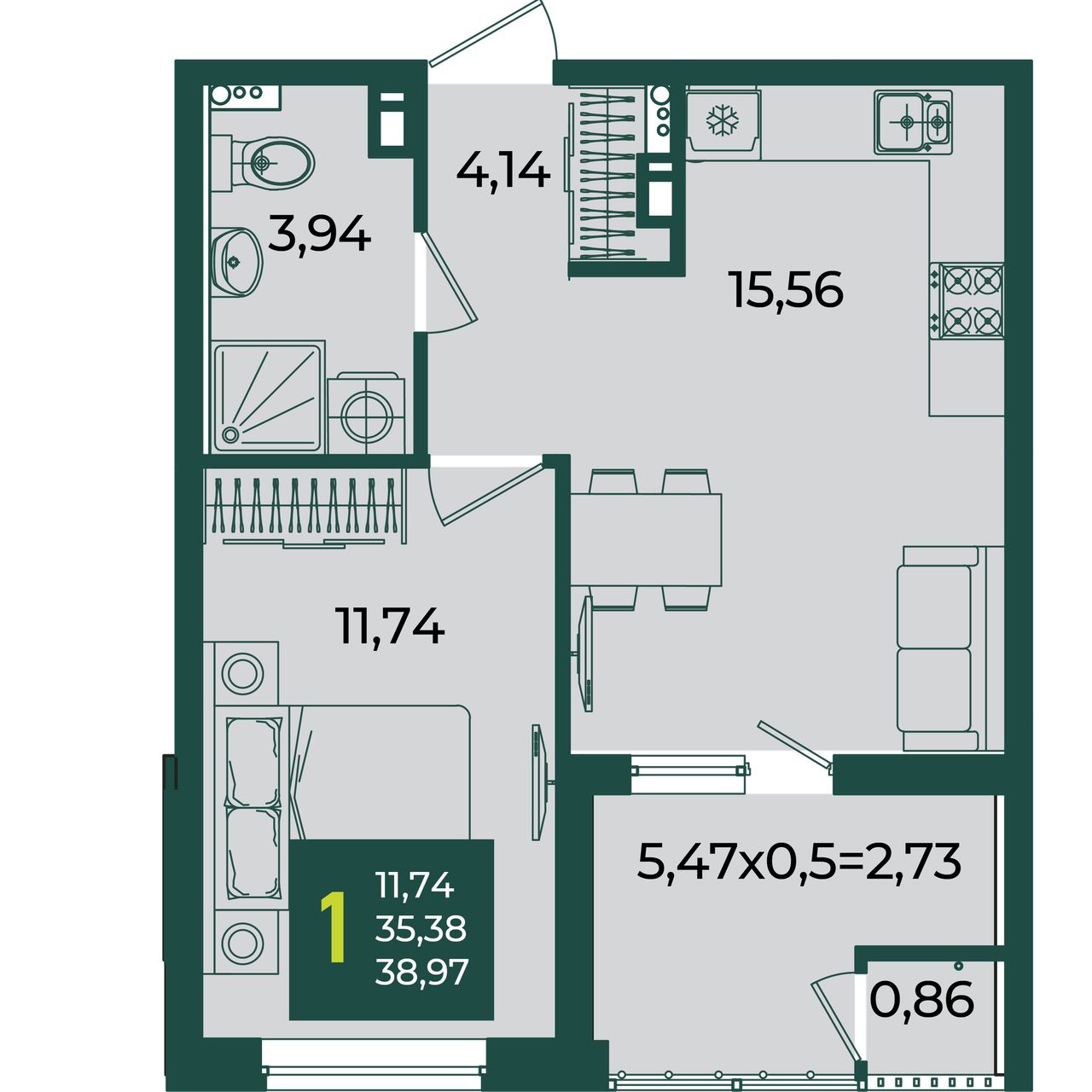 1-комнатная — 38,97 м² 18/18 эт. в Образцово