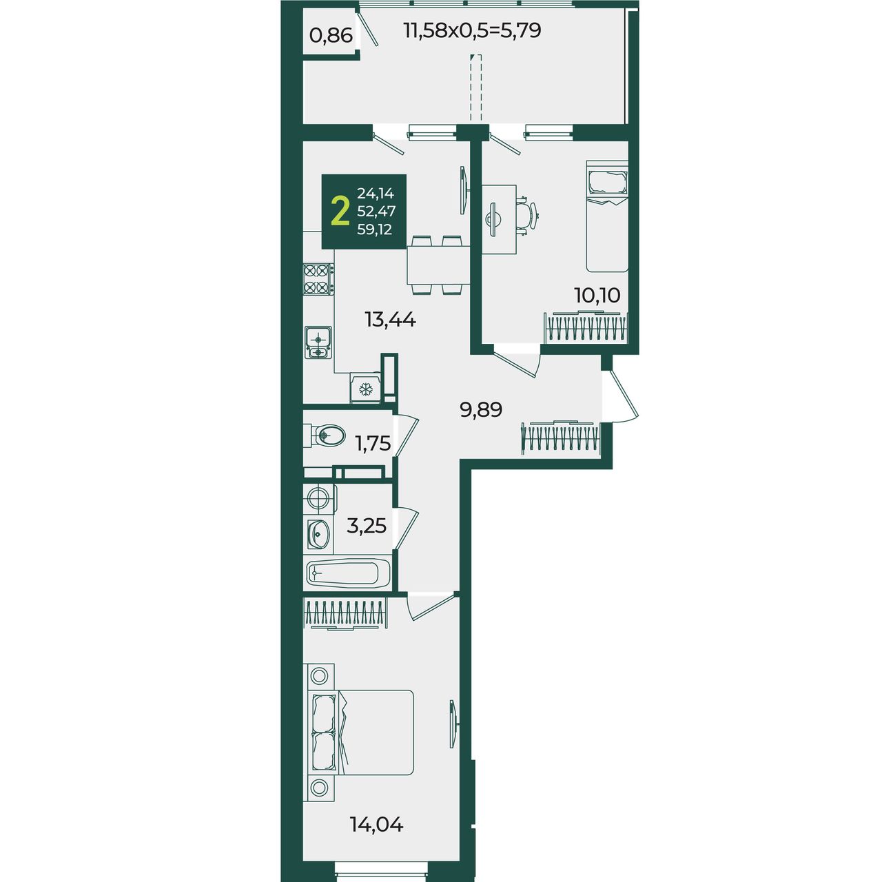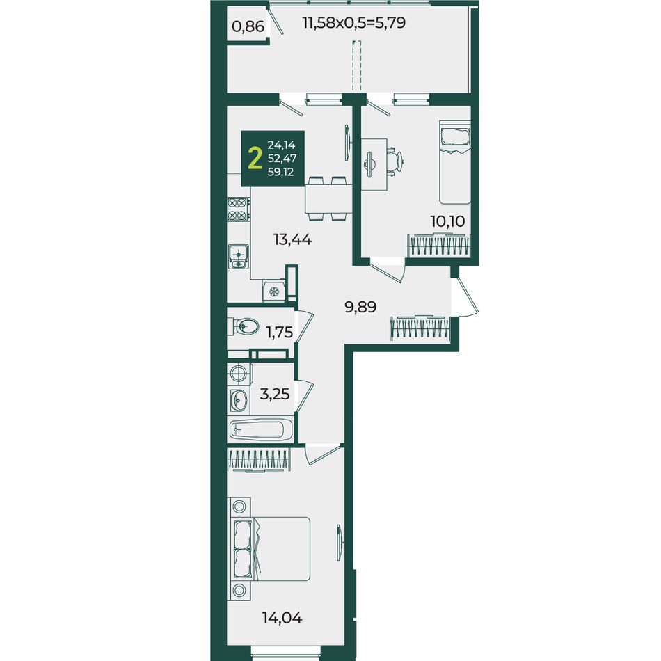 Общая площадь59,12 м²