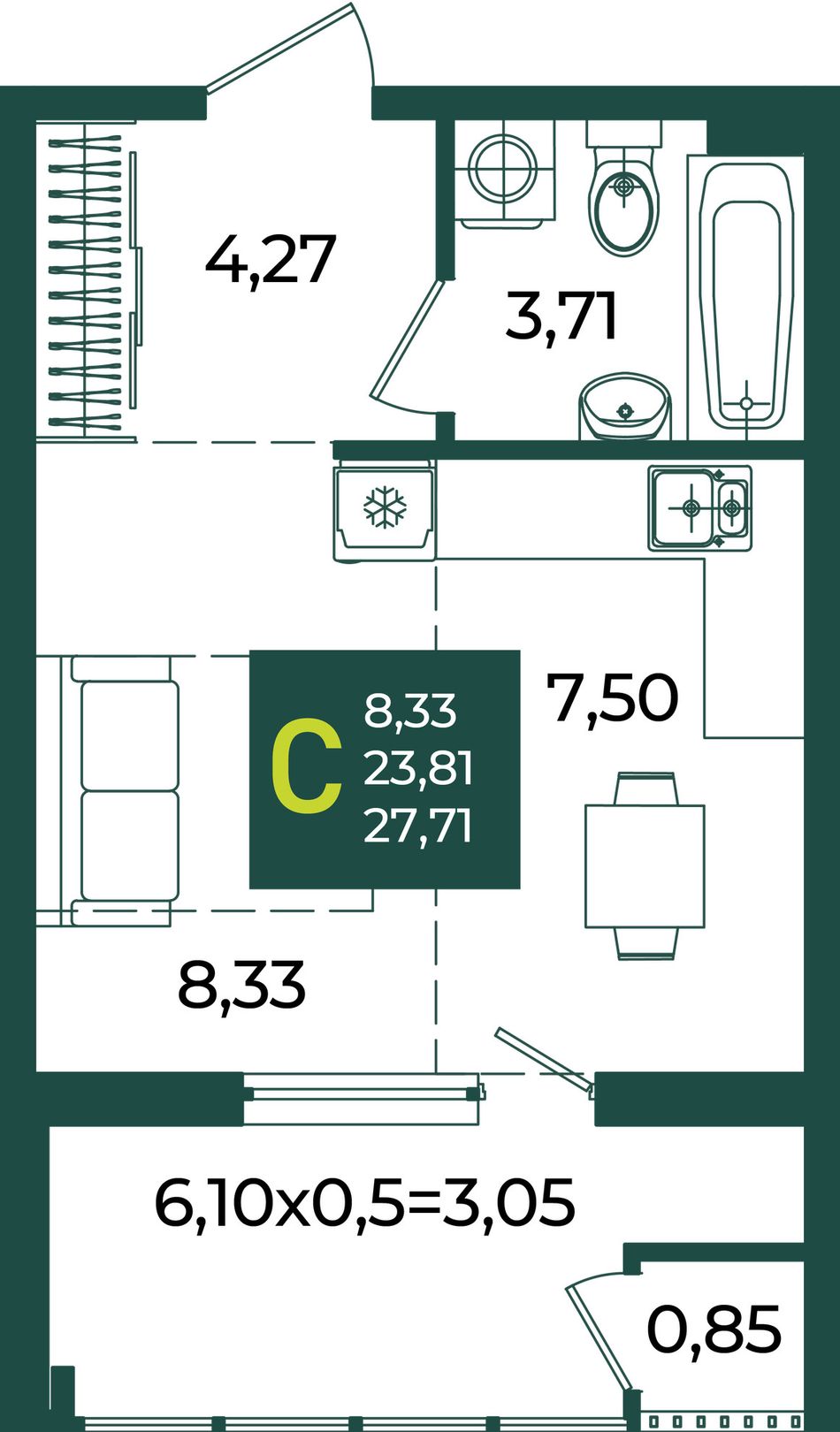| Студия | 22 - 28 м² | 4,2 - 5,2 млн ₽ |