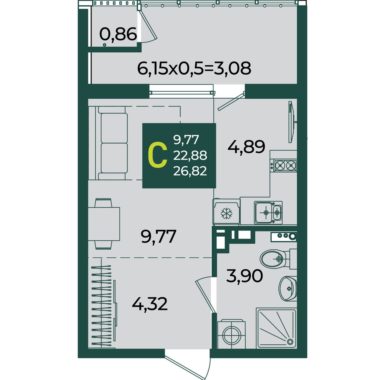 Общая площадь26,82 м²