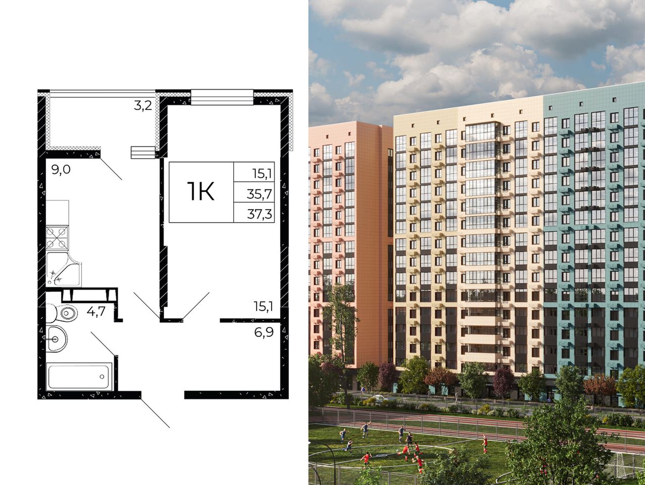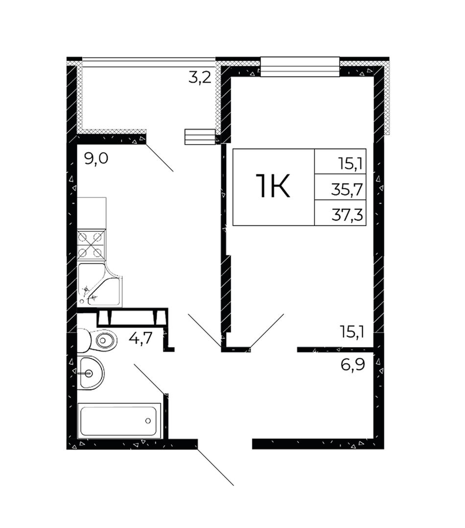 Общая площадь37,3 м²