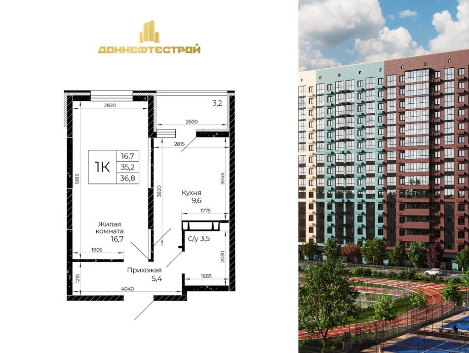 1-комнатная — 36,8 м² 4/15 эт. в Флора