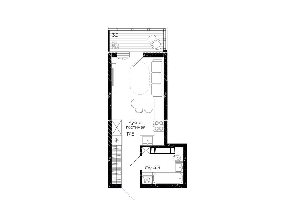 | Студия | 23 - 24 м² | 3,8 - 4,6 млн ₽ |