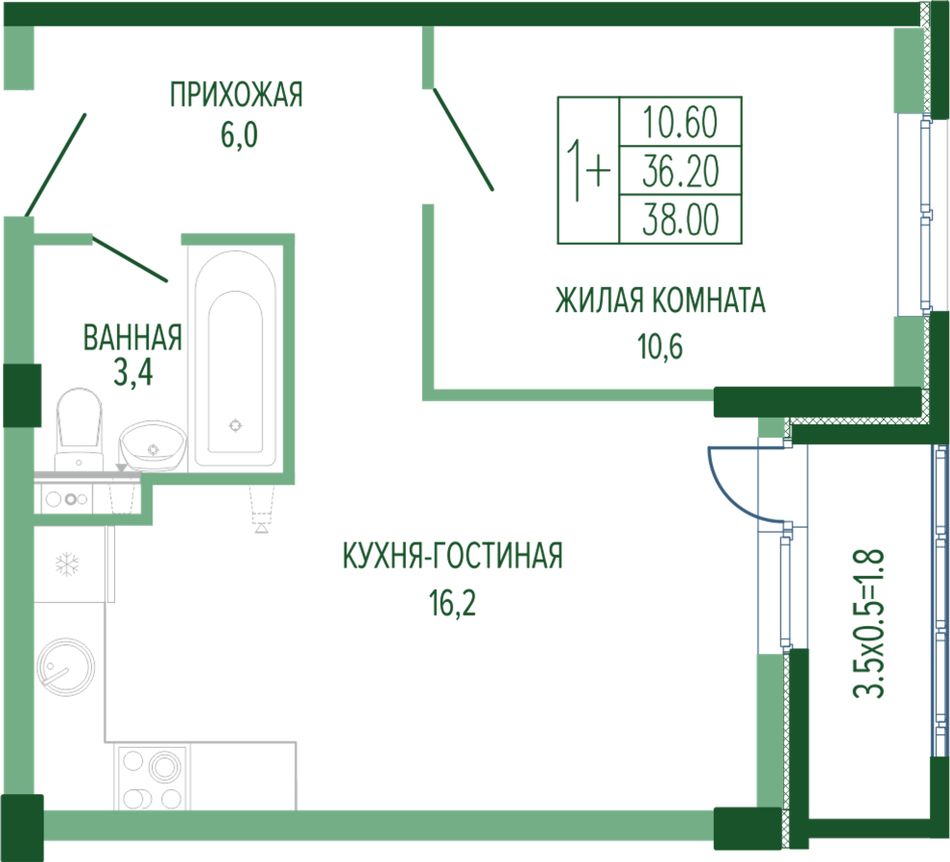 Жилая площадь10,6 м²