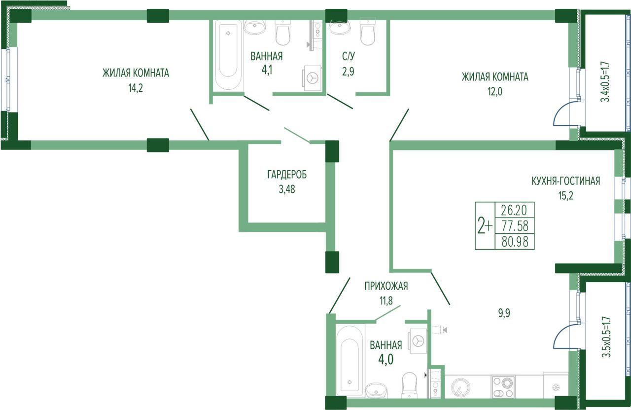 | 3-комн. | 68 - 91 м² | 8,1 - 13,6 млн ₽ |