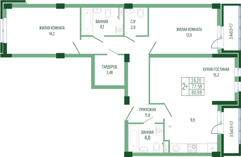 | 2-комн. | 57 - 83 м² | 11,9 - 23,5 млн ₽ |