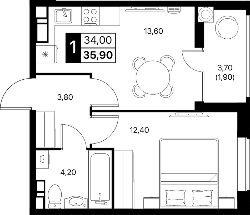 Общая площадь35,9 м²