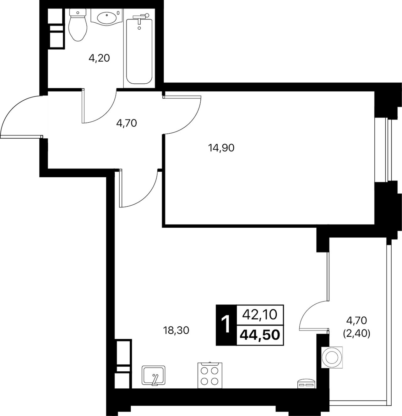 1-комнатная — 44,5 м² 8/20 эт. в Квартал впечатлений Эстет