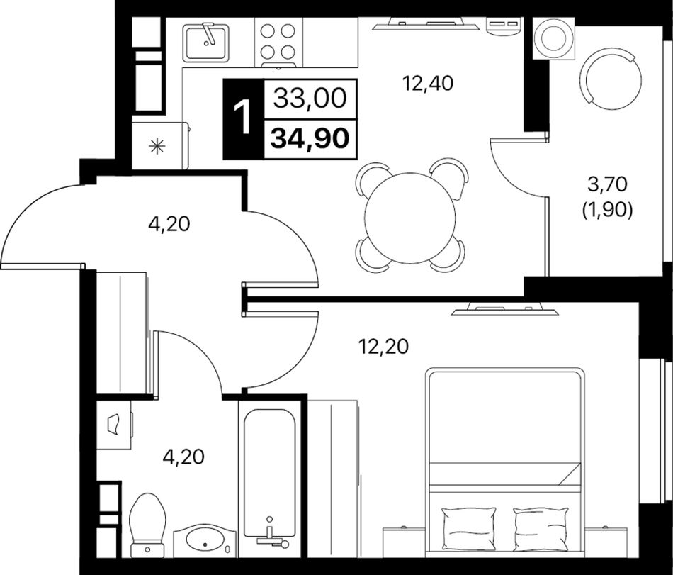 1-комнатная — 34,9 м² 11/12 эт. в Квартал впечатлений Эстет