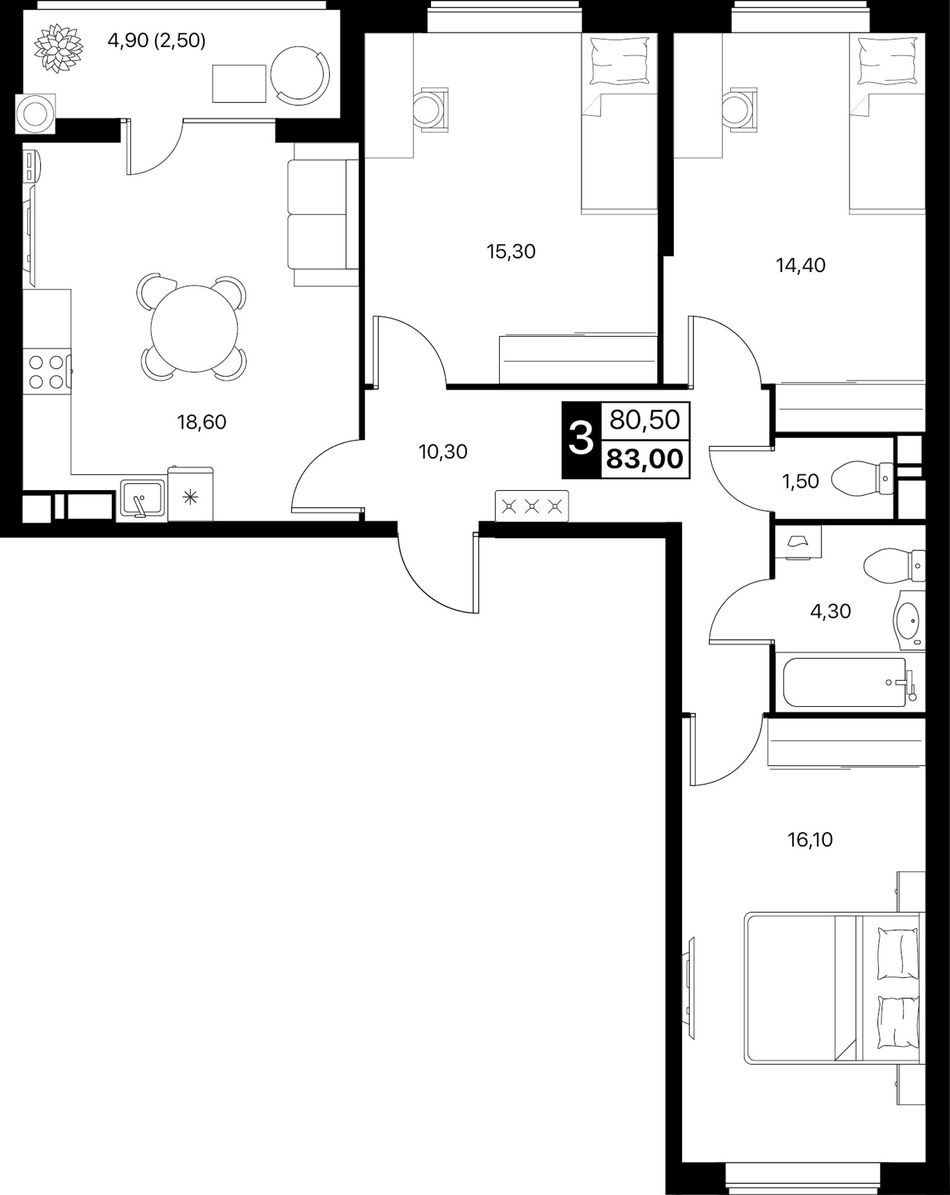 Общая площадь83 м²