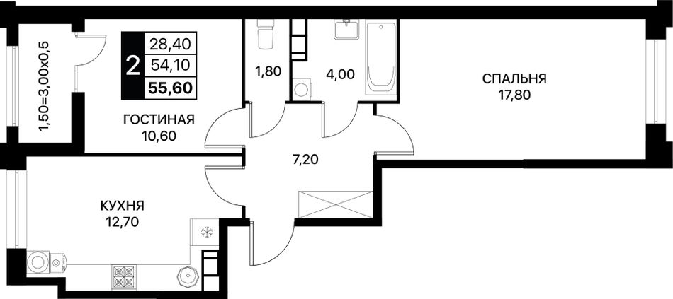 Общая площадь55,6 м²