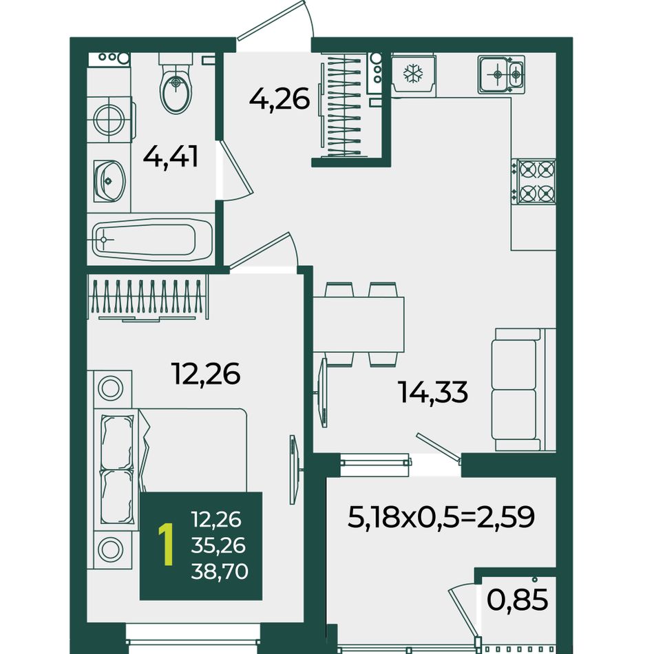 1-комнатная — 38,7 м² 2/18 эт. в Образцово
