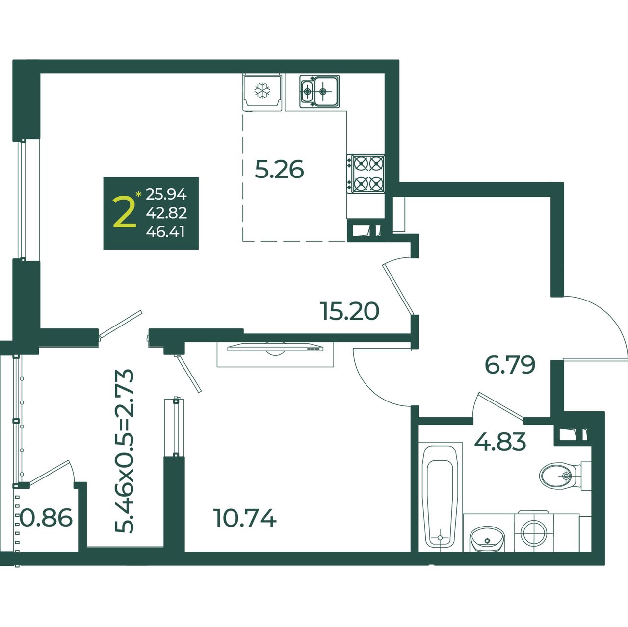 Общая площадь46,41 м²