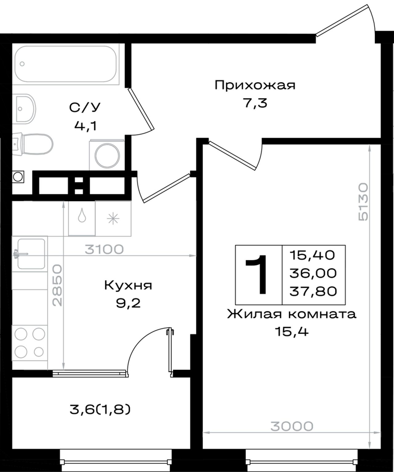 Общая площадь37,8 м²