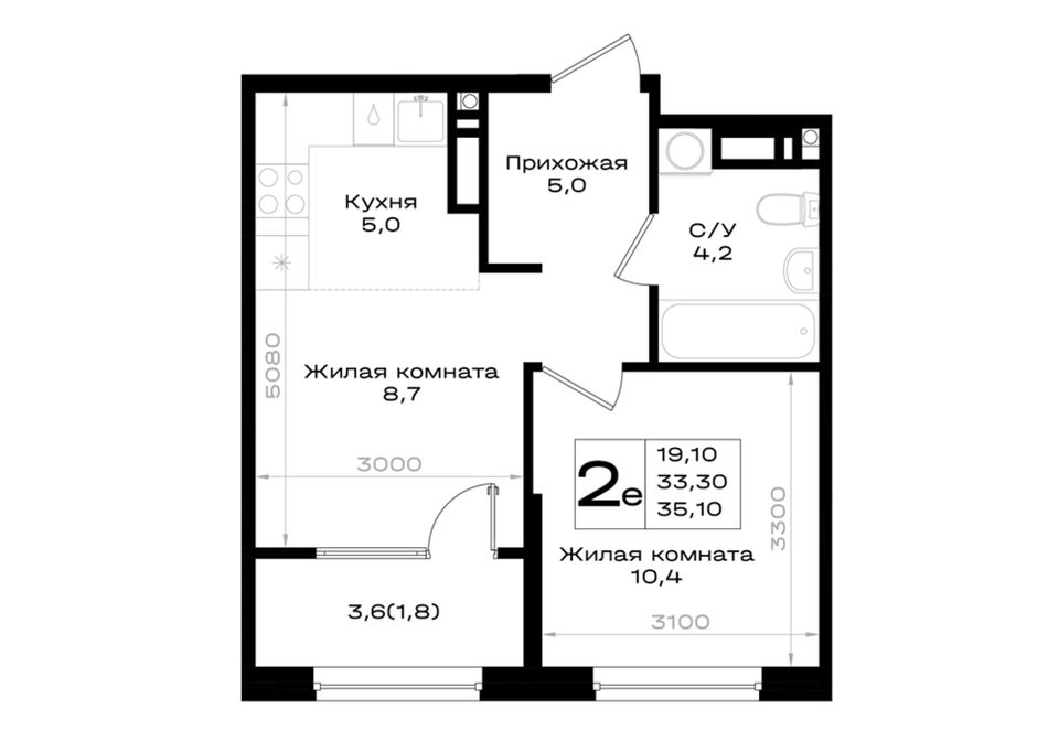 2-комнатная — 35,1 м² 17/18 эт. в Придонье