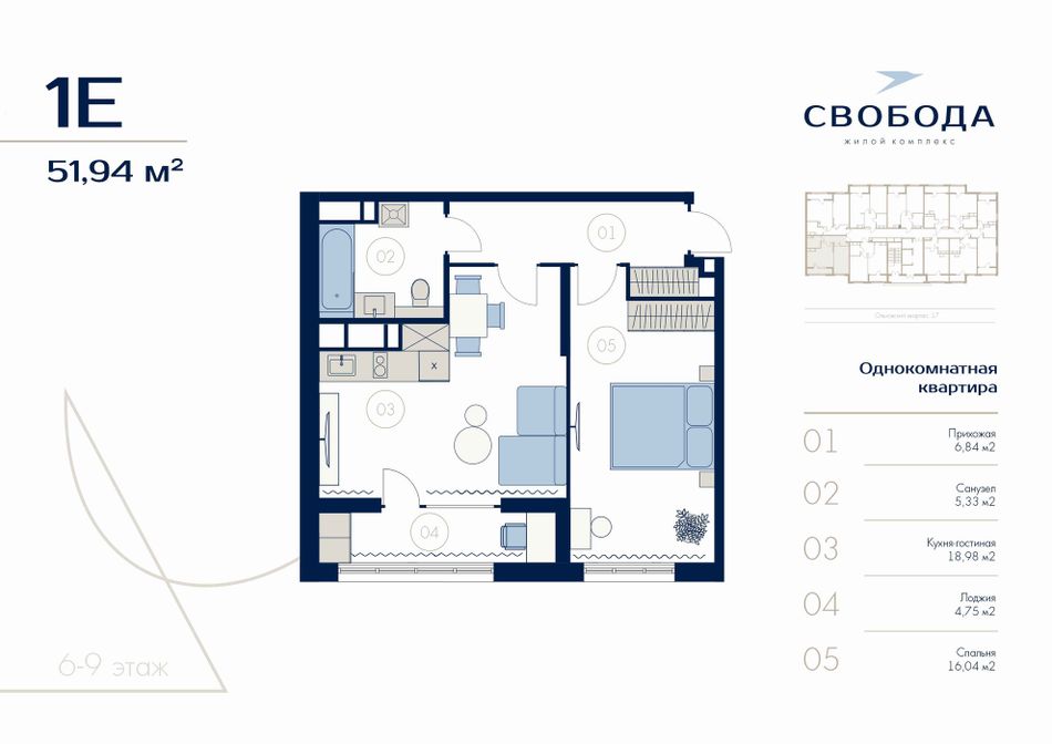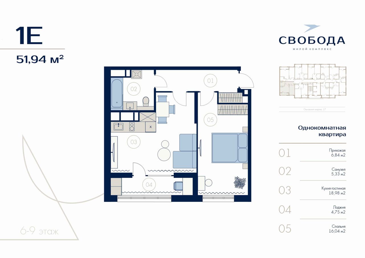 2-комнатная — 51,94 м² 7/19 эт. в Свобода