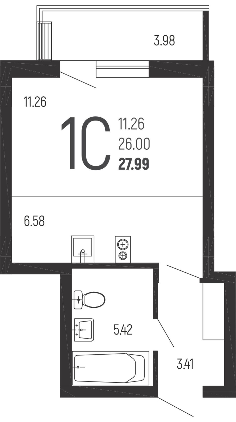 Студия — 27,99 м² 2/14 эт. в Нахимовский