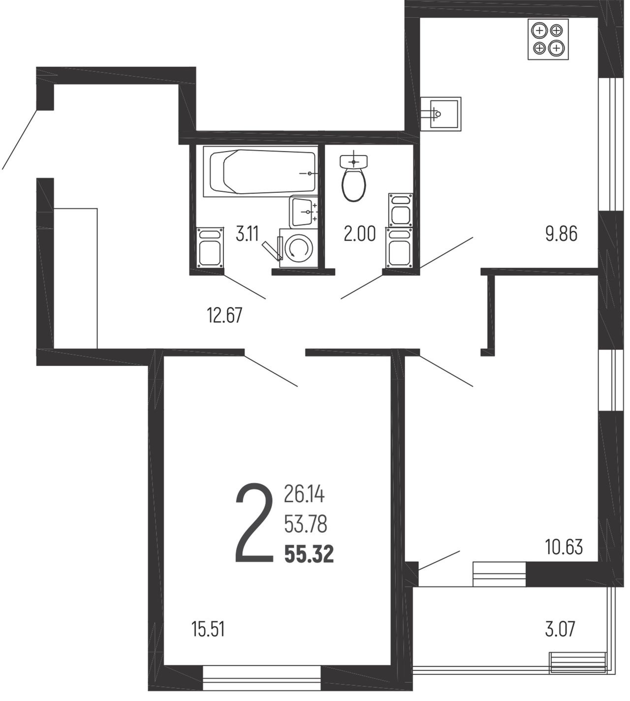2-комнатная — 55,32 м² 8/14 эт. в Нахимовский
