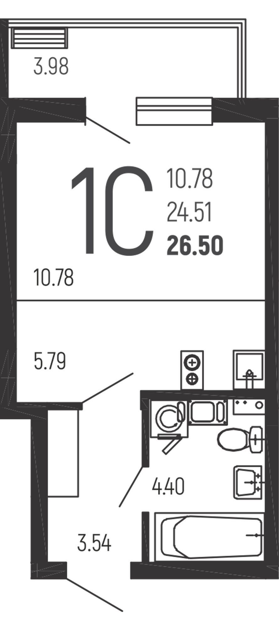 Студия — 26,5 м² 2/14 эт. в Нахимовский