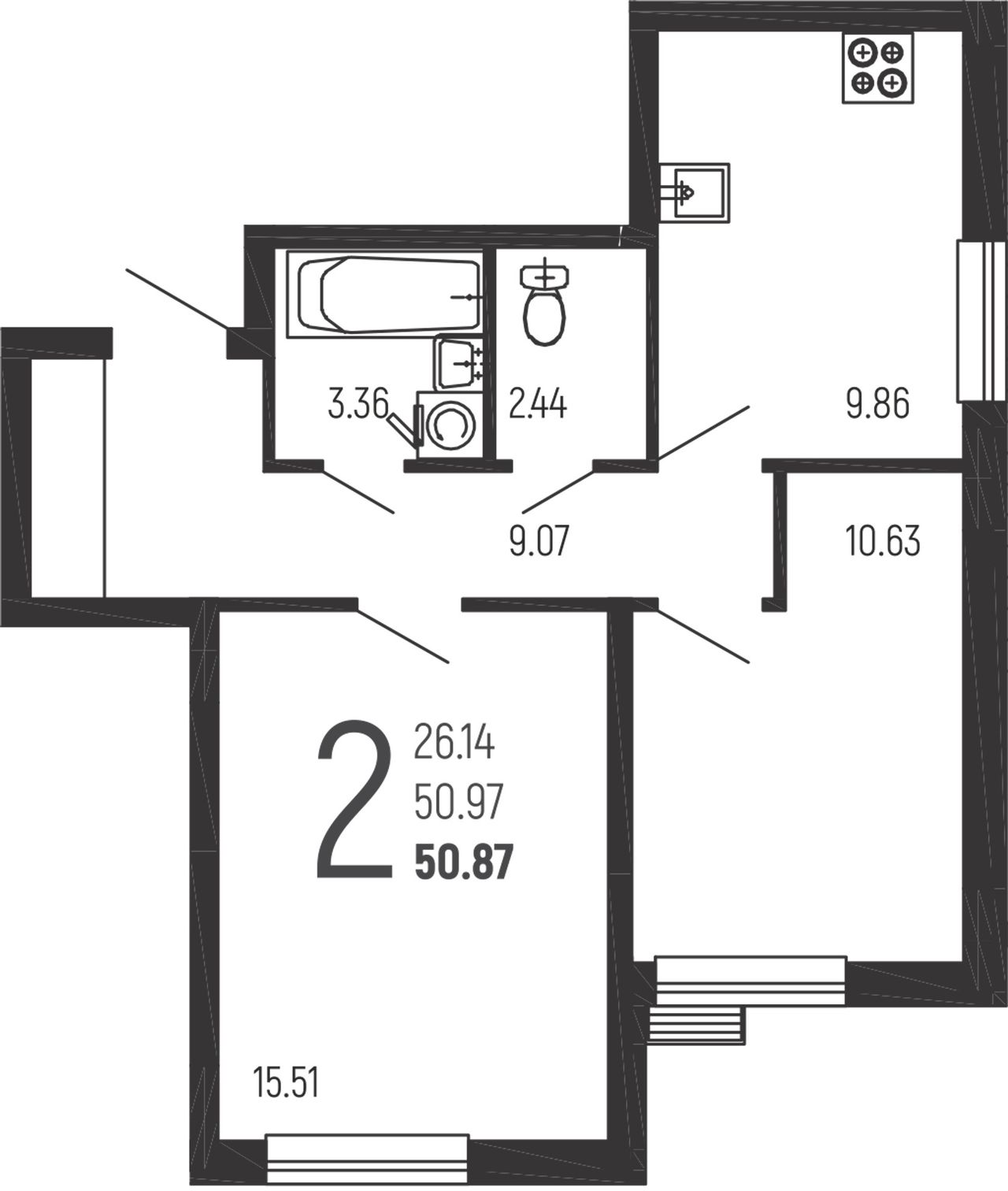 2-комнатная — 50,87 м² 1/14 эт. в Нахимовский