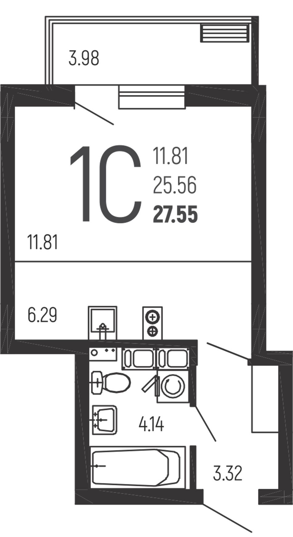 Студия — 27,55 м² 3/14 эт. в Нахимовский