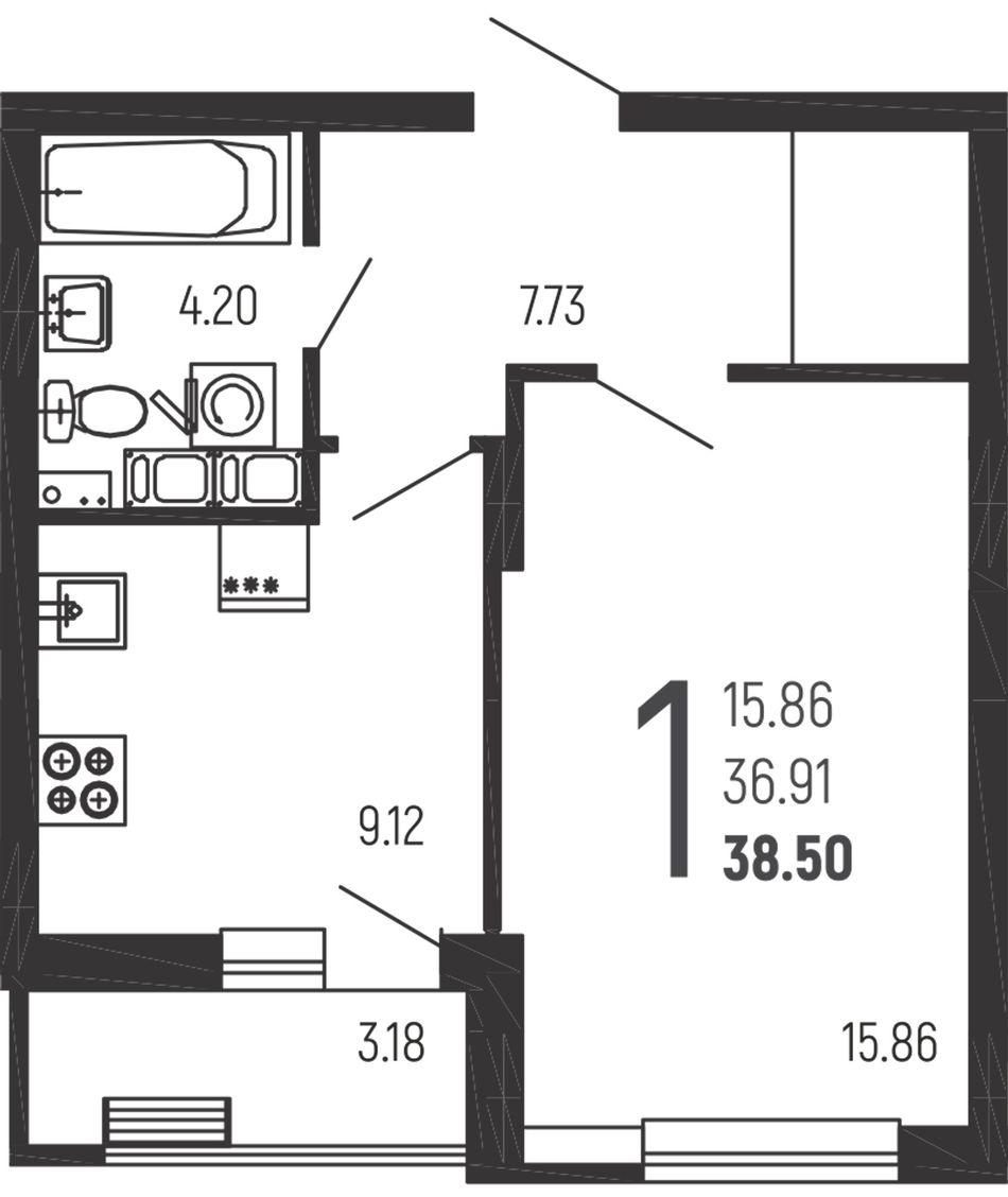 1-комнатная — 38,5 м² 7/14 эт. в Нахимовский