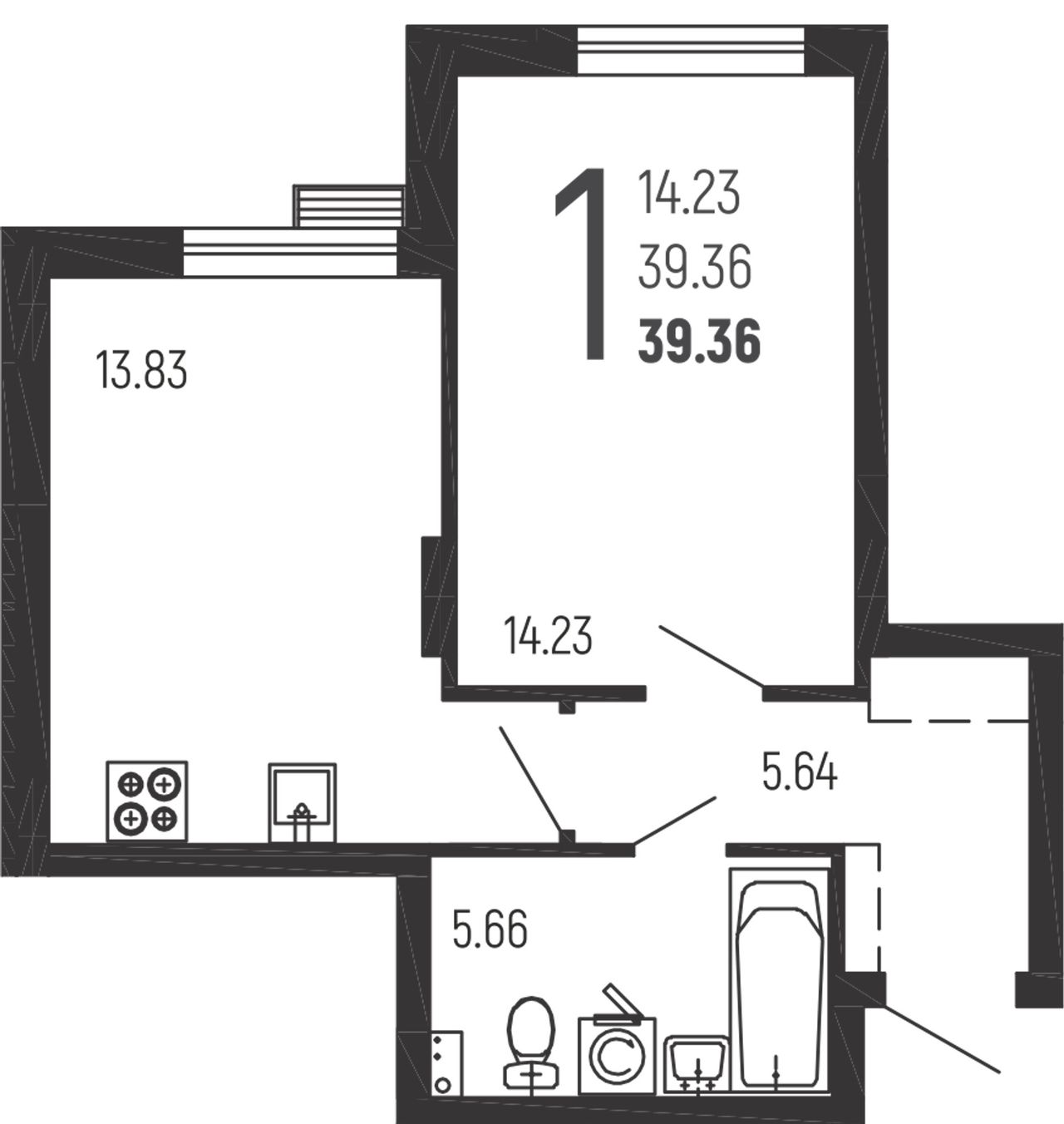 1-комнатная — 39,36 м² 1/9 эт. в Нахимовский