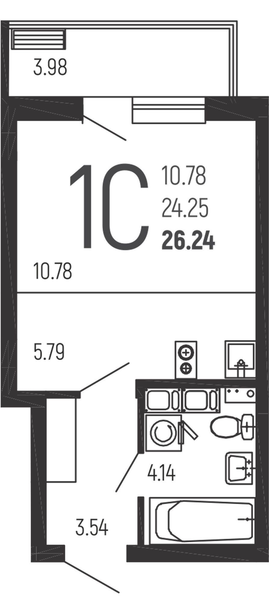 Студия — 26,24 м² 11/14 эт. в Нахимовский