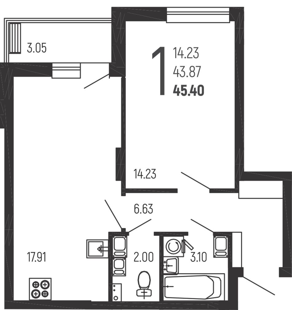 1-комнатная — 45,4 м² 10/14 эт. в Нахимовский