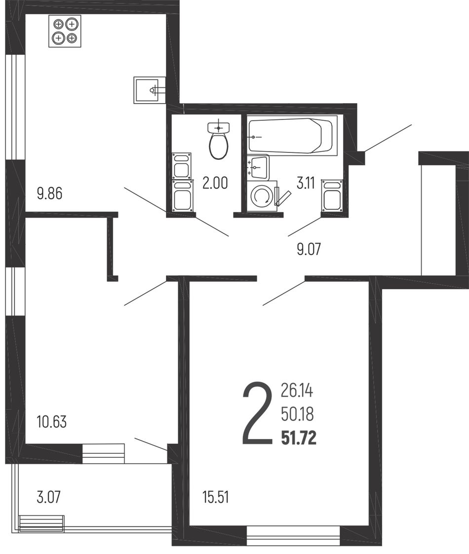 2-комнатная — 51,72 м² 12/14 эт. в Нахимовский