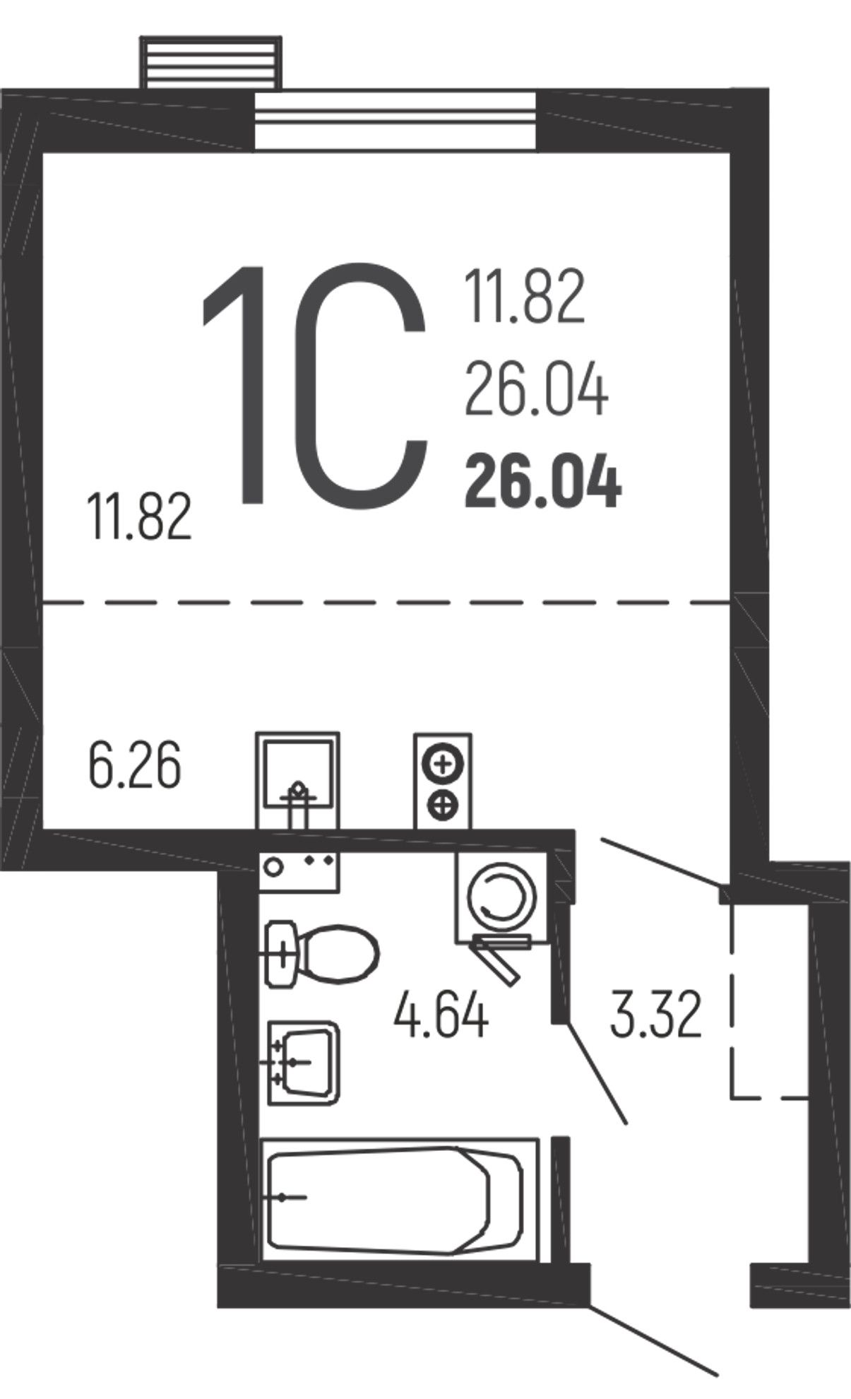 Студия — 26,04 м² 1/9 эт. в Нахимовский