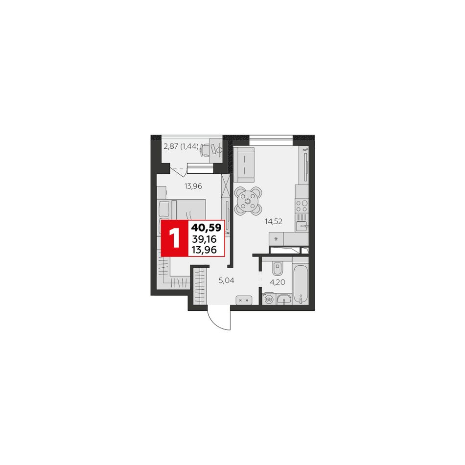 2-комнатная — 39,16 м² 3/9 эт. в К24