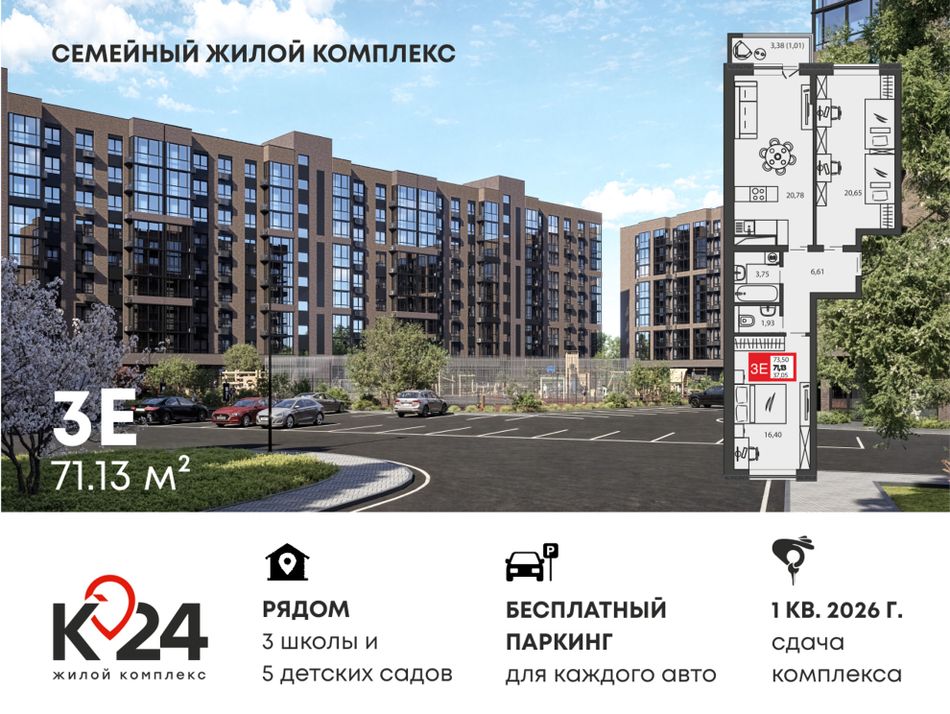 Ищете дом, где соседи знают друг друга в лицо, а во дворе всегда есть место для машины? Добро пожаловать в «К24» — жилой комплекс комфорт-класса, созданный специально для семейной жизни. Сдача комплекса уже в марте!