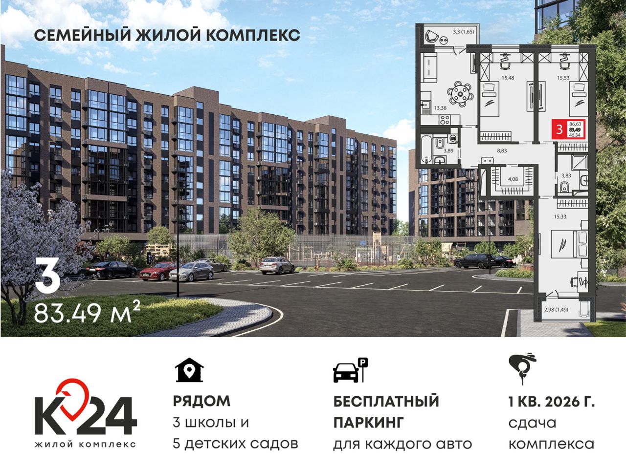 3-комнатная — 83,49 м² 3/9 эт. в К24