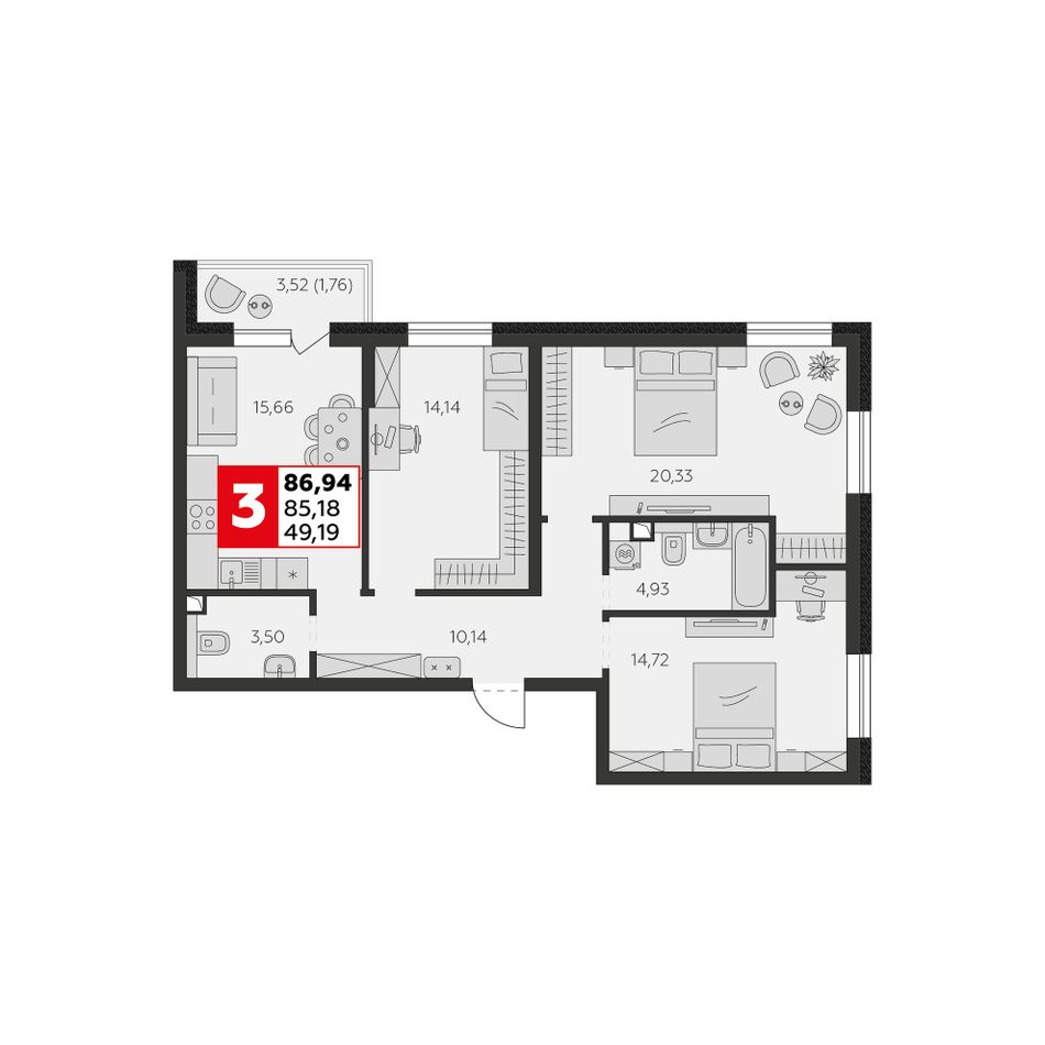Общая площадь85,18 м²