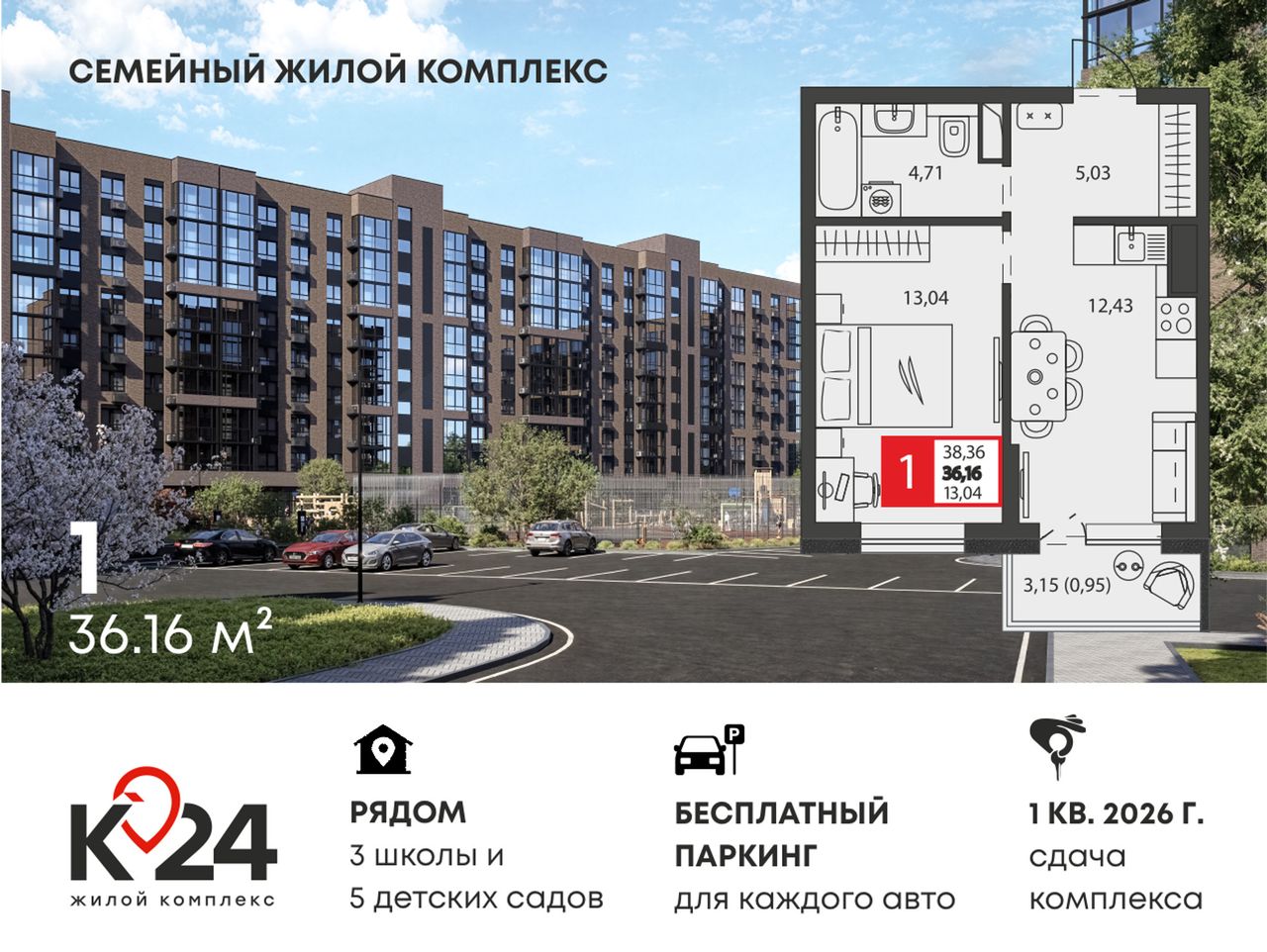 Ищете дом, где соседи знают друг друга в лицо, а во дворе всегда есть место для машины? Добро пожаловать в «К24» — жилой комплекс комфорт-класса, созданный специально для семейной жизни. Сдача комплекса уже в марте!
