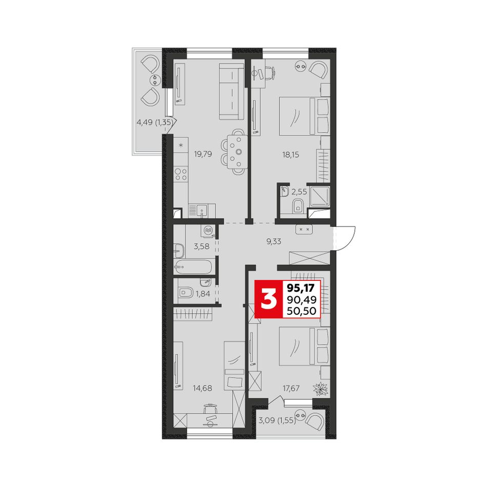 4+ комнатная — 90,49 м² 2/9 эт. в К24