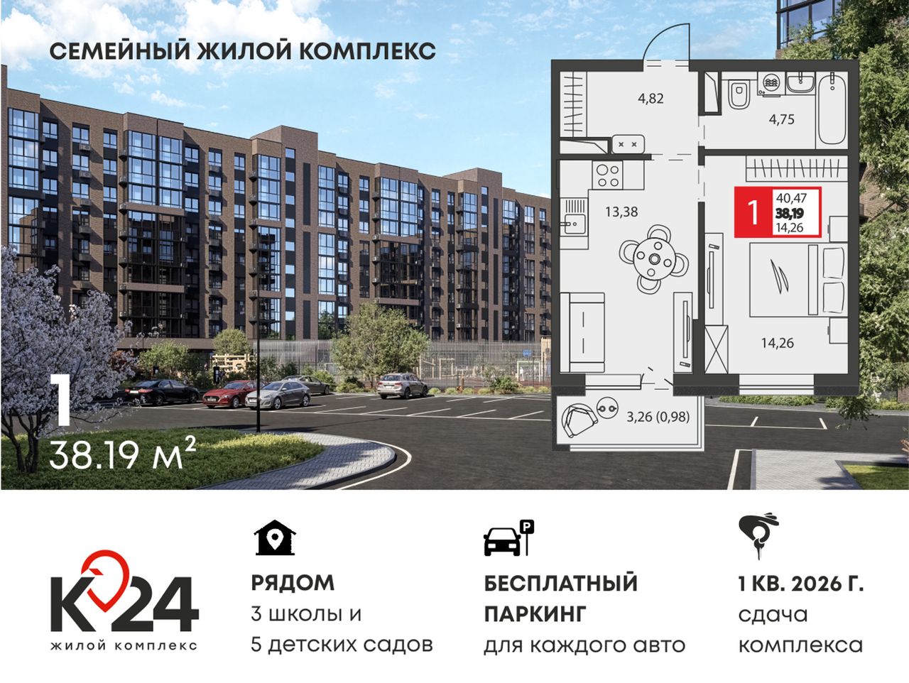 Ищете дом, где соседи знают друг друга в лицо, а во дворе всегда есть место для машины? Добро пожаловать в «К24» — жилой комплекс комфорт-класса, созданный специально для семейной жизни. Сдача комплекса уже в марте!