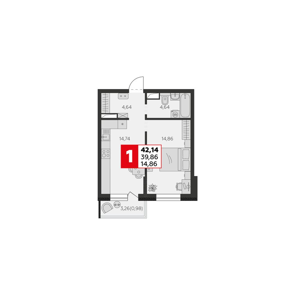 Общая площадь39,86 м²