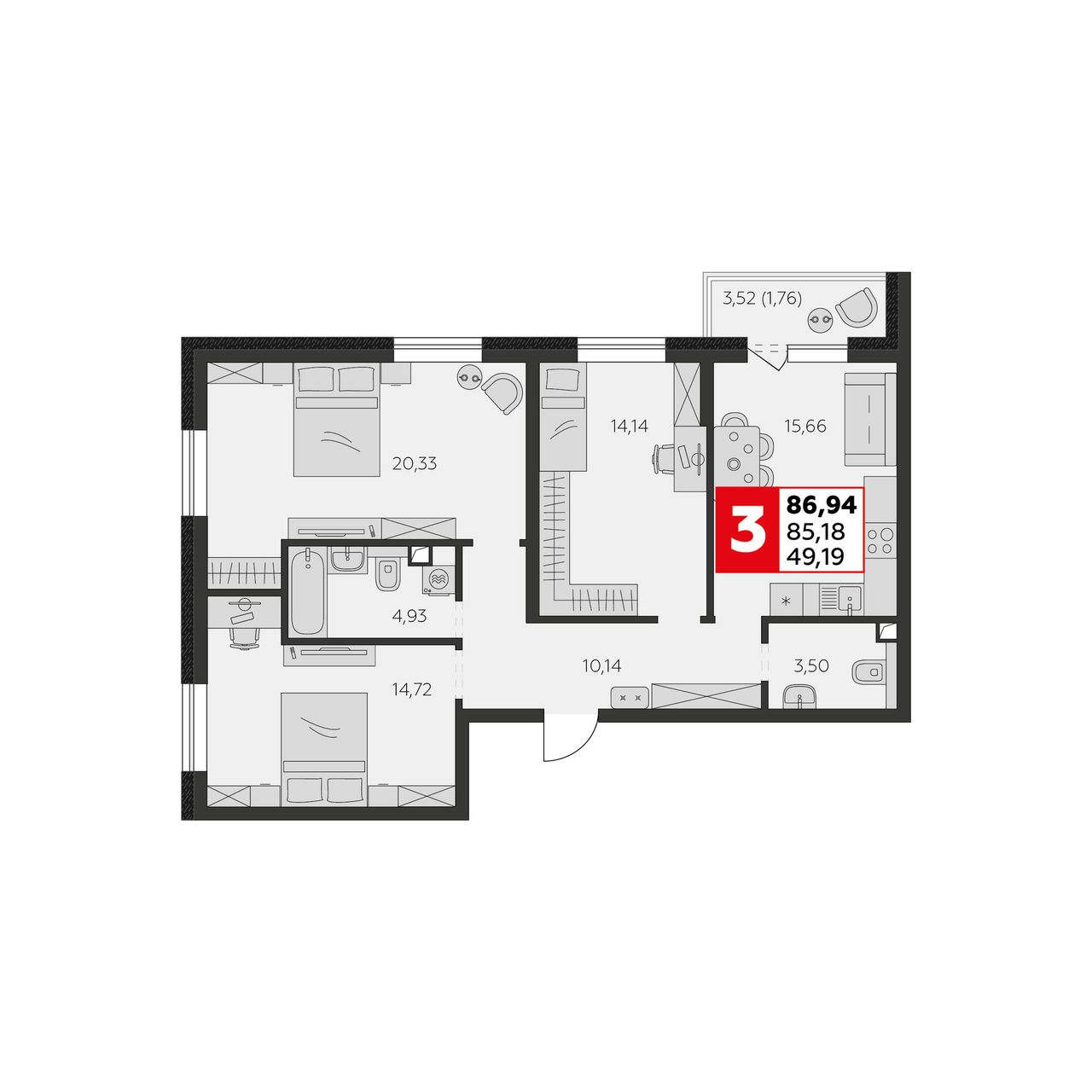 4+ комнатная — 85,18 м² 2/9 эт. в К24
