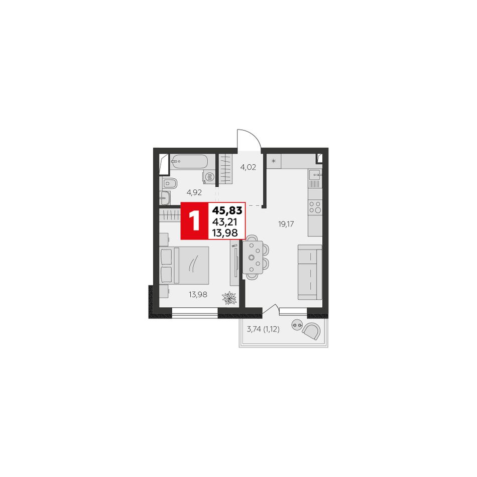 2-комнатная — 43,21 м² 2/9 эт. в К24