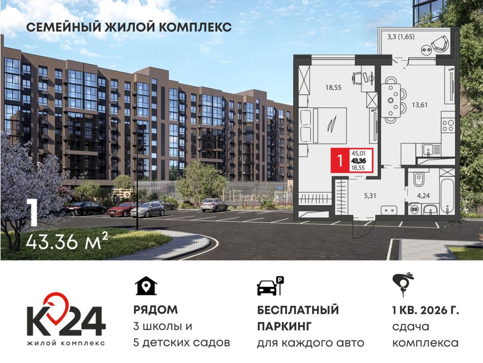 Ищете дом, где соседи знают друг друга в лицо, а во дворе всегда есть место для машины? Добро пожаловать в «К24» — жилой комплекс комфорт-класса, созданный специально для семейной жизни. Сдача комплекса уже в марте!