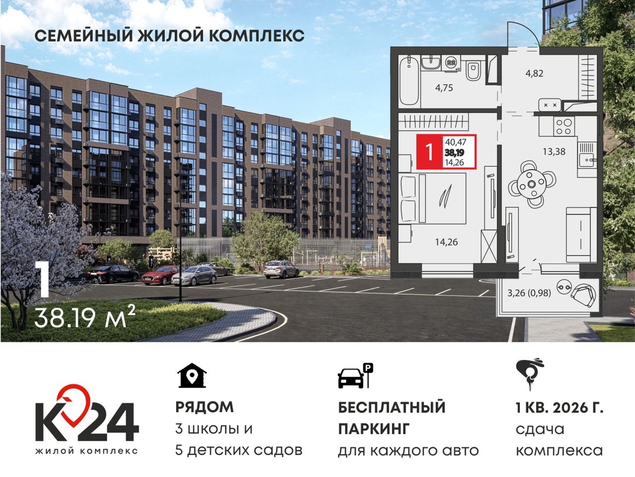 1-комнатная — 38,19 м² 5/9 эт. в К24