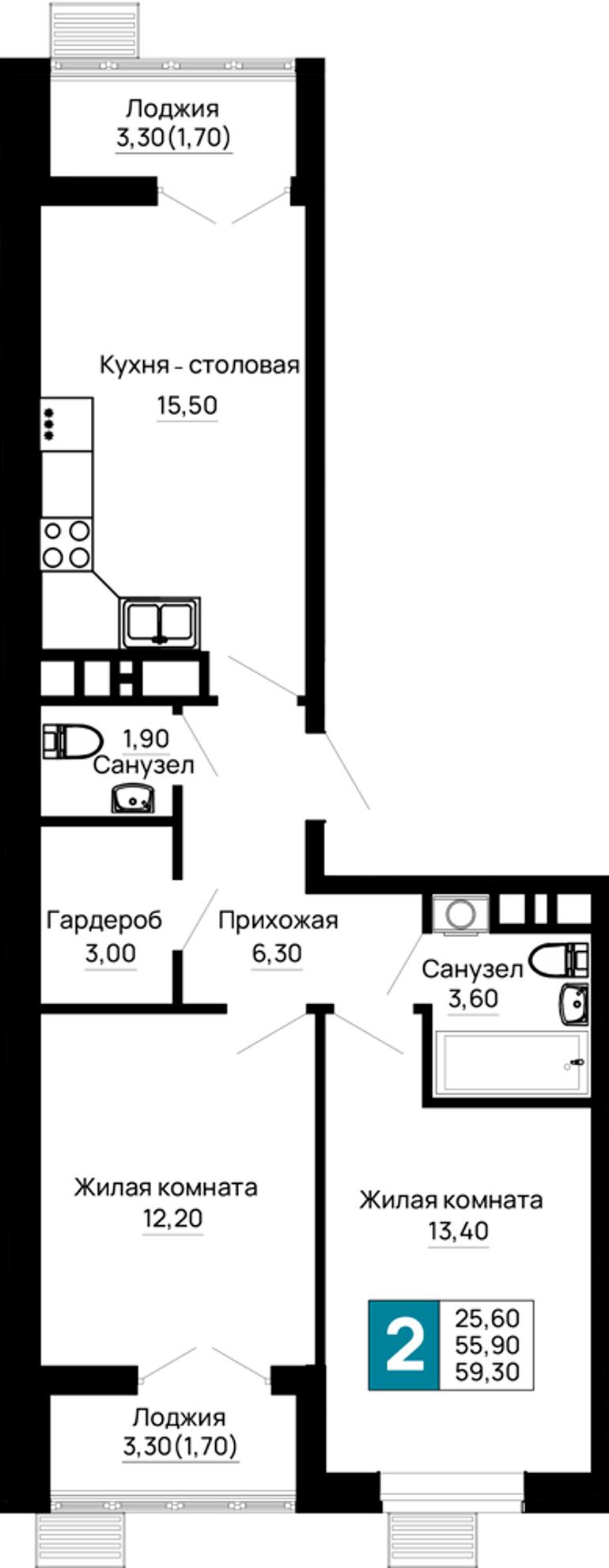 2-комнатная — 59,3 м² 1/16 эт. в Традиции